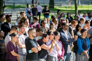 A vigil was held at Tercentenary Theatre yesterday to honor the victims of the Orlando mass shooting.