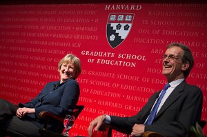 Harvard University President Drew Gilpin Faust and her brother, Donald Gilpin, a retired English and drama teacher, shared their thoughts on pedagogy in a discussion at the Harvard Graduate School of Education.