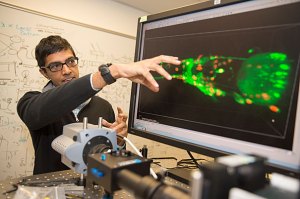 A state-of-the-art microscope built by Harvard researchers will allow scientists to capture 3-D images of all the neural activity in the brains of tiny, transparent C. elegans worms as they crawl.