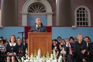 Commencement speaker Deval Patrick, the former governor of Massachusetts, called on graduates to follow talk with action on the most urgent problems of the day.