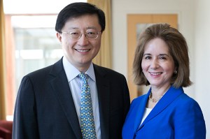 Outgoing Harvard Alumni Association President Cynthia A. Torres ’80, M.B.A. ’84, is passing the leadership to Paul L. Choi ’86, J.D. ’89.