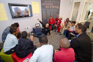 A young students’ leadership group from Boston celebrates its success stories during a commencement gathering at Harvard.