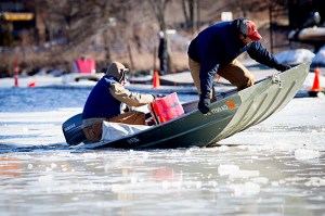Charles River, frozen into the spring, hampers Harvard’s crew season. Lightweight crew competitions were canceled for Saturday due to the icy conditions on the Charles. The men’s heavyweight crew will compete on April 4.