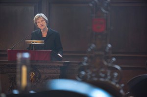 Harvard President Drew Faust delivered Morning Prayers on Friday, offering those gathered in Appleton Chapel for the solemn service a deeply personal reflection on her experience with the Civil Rights Movement 50 years ago.