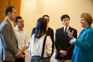 Ten Harvard Presidential Public Service Fellows who spent the summer scattered across the country working to help others. In an annual luncheon with President Drew Faust, the fellows shared their experiences.