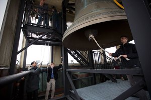 In celebration of the city of Cambridge and of the country’s oldest university, a number of neighboring churches and institutions ring their bells at the conclusion of Harvard’s 363rd Commencement Exercises, for the 26th consecutive year.