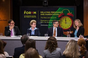 Panelists at HSPH examined the trend toward delayed parenting identified in a recent government report.