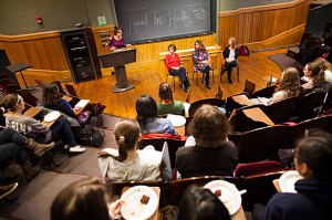 Three specialists spoke to students about the benefits of intuitive eating in an event at Sever Hall.