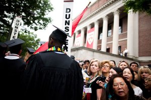 The sea of caps and gowns, many decorated with colorful regalia, is a memorable sight in Harvard’s Tercentenary Theatre on Commencement Day. But glance beyond the graduates and you’ll find an even larger gathering.