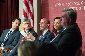 A panel at the John F. Kennedy Jr. Forum examined the interplay of law enforcement coordination, leadership, and social and traditional media during the Boston Marathon bombing investigation.