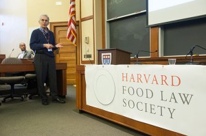 Panel discusses “Forum on Food Labeling: Putting the Label on the Table,” in a presentation by the Harvard Food Law Society.