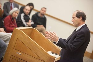 Director Ken Burns presented clips of his new documentary on the Dust Bowl at Harvard’s Boylston Hall, talking about the creative process that he uses in his films.