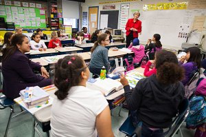 President Drew Faust joined Maria Cordon, principal of the Hennigan Elementary School in Jamaica Plain on Tuesday as part of Boston’s “Principal for a Day.”