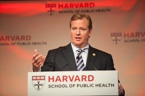 NFL Commissioner Roger Goodell highlighted recent moves to make the game safer and affirmed a commitment to player safety Thursday (Nov. 15) during a talk at the Harvard School of Public Health.