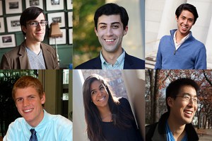 Six Harvard undergraduates are among the 32 American men and women chosen as Rhodes Scholars on Sunday. They will begin their studies at the University of Oxford in October 2013.