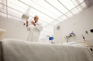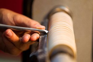 Artist Alan Hark runs the Mather House wood-turning studio, where students work and hone their skills with wood.