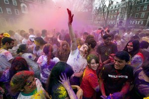 Harvard undergraduates gleefully covered one another in bright colors on in observance of Holi, the Hindu celebration of spring.