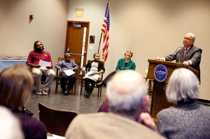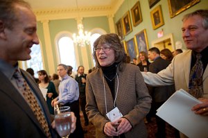 Boston Mayor Thomas M. Menino and Harvard Drew President Faust celebrate the fourth round of Harvard Allston Partnership Fund grants that have infused $400,000 into 19 nonprofits.