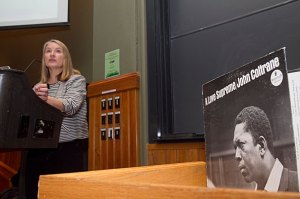 During a lecture that is part of a series of master classes sponsored by Harvard’s Mahindra Humanities Center, Harvard Professor Ingrid Monson explored the genius behind John Coltrane’s 1965 jazz album “A Love Supreme.”