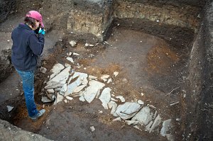 Students digging in Harvard Yard uncovered a major feature in the final days before the site had to be filled: a stone-lined trench that likely began the conversion of the marshy area to the high and dry land of today.