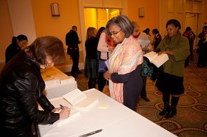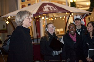 Dozens of staff, faculty, and students — along with local business owners and Harvard President Drew Faust — turned out at Forbes Plaza on Dec. 2 to kick off Crimson Shops Local, an annual effort by the University and the Harvard Square Business Association to encourage shopping nearby for the holidays.