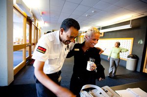 Security guard Yohannes Tewolde does his job with flair at Currier House.