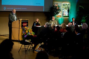 Elizabeth Warren, head of the Congressional Oversight Panel for the Troubled Asset Relief Program, spoke at Harvard Law School about her efforts to establish a consumer financial protection agency.