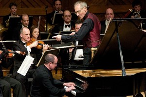 In recognition of his exceptional commitment to fostering broad appreciation for classical music, Boston Landmarks Orchestra conductor Charles Ansbacher was presented with the centennial medallion by Harvard Extension School Dean Michael Shinagel.