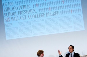 Harvard President Drew Faust was interviewed by broadcast journalist Charlie Rose on Oct. 14.