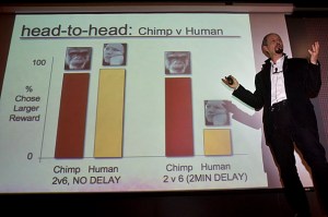 Psychology Professor Marc Hauser dispels misconceptions about human and ape behavior with regard to patience, impulsiveness, and economic interactions in Harvard Museum of Natural History talk.