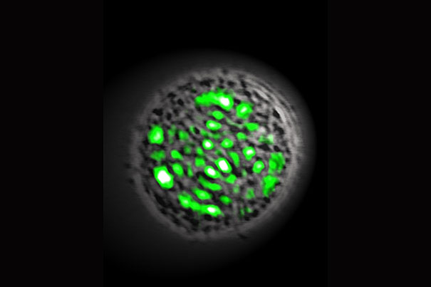 In a new report, Harvard researchers Malte Gather and Seok-Hyun Yun describe how a single cell genetically engineered to express green fluorescent protein can be used to amplify the light particles called photons into nanosecond-long pulses of laser light.