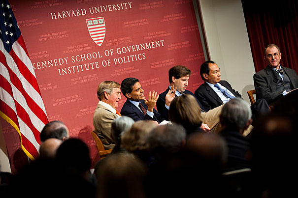 Former Washington, D.C., chancellor of schools Michelle Rhee, former Florida governor and current visiting fellow Jeb Bush, and the Center for American Progress’ John Podesta tackled the politics of education reform at an Institute of Politics forum moderated by former U.S. Secretary of Education Margaret Spellings.