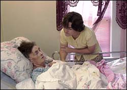 Harvard Divinity student Alyssa May leaned over Claire’s bed, joking with the older woman about dancing and horseback riding. Claire, looking small and frail under the covers of her high, railed bed, joked back, her soft voice difficult to hear.