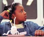 Teacher Ann Ambiel (top) points out the butterflies included in the exhibit. Julia Morgan (right) draws wings on her bug. A handmade felt butterfly. Imani Graham (above) listens attentively during the “Beetles, Bugs and Butterflies” class at the Museum of Natural History.