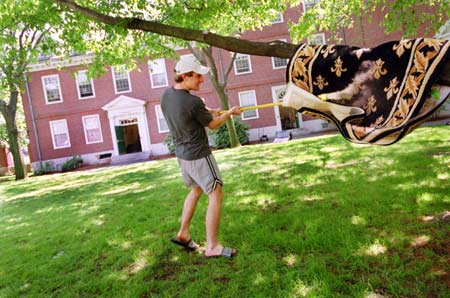 On a day of exams, packing, moving, and other onerous tasks, Ryan Turner ’03 finds a pleasant respite as he beats his rug with vigor and accuracy. Exactly which professor he had in mind is unknown.