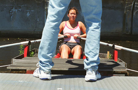 Do you feel insecure in a canoe? Compared with a scull, a canoe is like the royal barge. What’s more, a scull is so lightly built that if, on getting into it, you were to step onto the hull instead of the sturdier seat deck, your foot would go right through.