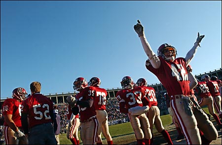 Sophomore quarterback Ryan Fitzpatrick, who took the reins from Rose to start the second half, wasted little time in orchestrating Harvard’s third-quarter barrage. The play-caller capped a six-play drive with a four-yard keeper to make it 6-6. An extra point by senior Anders Blewett handed Harvard the 7-6 edge. Less than three minutes later, the Harvard offense took to the air, when Fitzpatrick connected with Carl Morris (106 yards on the day) for a game-high 50-yard reception. Morris’ completion set up Harvard’s second touchdown, another short-yardage sneak by Fitzpatrick. After a failed extra-point attempt, Harvard was up 13-6.