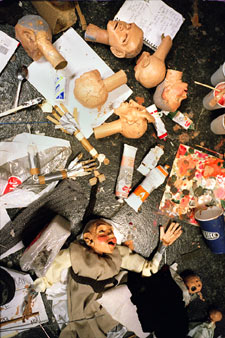 “We realized he looked too much like George W. Bush,” said co-director Emily Carmichael ’04, wielding a knife over the would-be king’s ears.