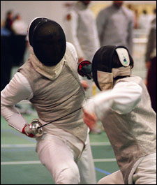 Strong performances from Anne Austin ’06 and Liz Blaze ’04 marked Saturday’s play: Each of the swordsmiths lost only one bout on the day in women’s foil, while Harvard head coach Peter Brand singled out some good performances by captain Amy Bei ’03 in women’s saber.