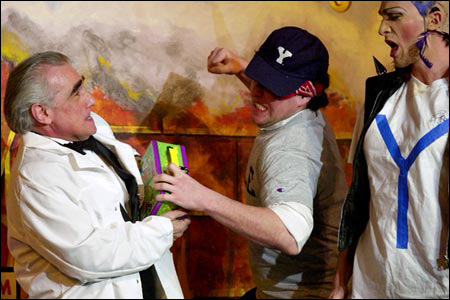 This revelation came about in the course of Scorsese’s ritual humiliation at the hands of Hasty Pudding Theatricals co-producers, seniors Chuck Howe and Robin Potts. Scorsese, the 2003 Hasty Pudding Man of the Year, was asked to act out a scene from the upcoming movie in which he portrayed “a hapless Yale student” whose lunchbox is stolen by a pair of street thugs.