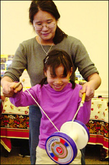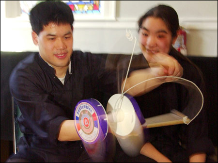 The Chinese Yo-yo Club is no humdrum affair. Their spinning, vibrating, flying toy sings a tune to its own colorful movement. The barbell-shaped, hollow “instrument” is manipulated on a string tied to two sticks, each one held by a player. By spinning the yo-yo fast enough a humming sound is created. Unlike the yo-yos most Westerners are familiar with, the Chinese yo-yo is not attached to the string, which allows it to be tossed, resulting in a dazzle of yo-yo trickery. In its second year, the Chinese Yo-yo Club is always on the lookout for new members – and new yo-yo routines.
