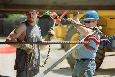 Others marveled at the complexity of the task, watching workers hand crank the wheels beneath the house to maneuver it directly over the cellar hole already dug on the Sumner Road lot.