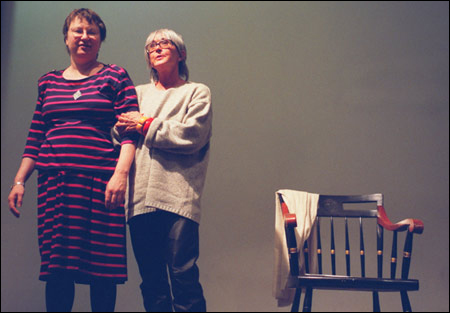 One habit Tharp advocates is that of physical motion. Hardly surprising for a dancer, but how would it work for, say, a librarian? To illustrate its effectiveness, Tharp enlisted two volunteers to enact a verb in front of the audience. Local librarian Naomi Allen ran – back and forth in a small space on the stage – until Tharp and audience feedback observed she was “stuck.”