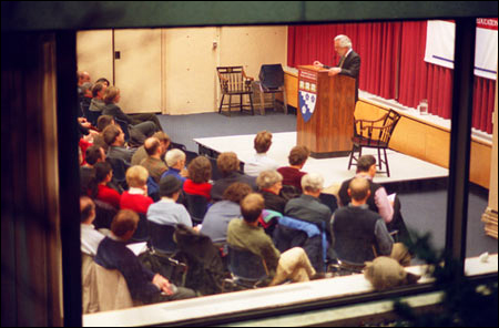 Cultural historian Louis Menand lectured Feb. 12 on the three moments when pragmatism, a quintessentially American philosophy that he defined as “an idea about ideas,” gained ascendancy in American intellectual life. Unfortunately, according to Menand, the third and last moment has just passed.