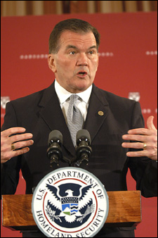 Ridge also warned that national security cannot be micro-managed from the nation’s capital. “It is really about integration of a nation. It is about partnerships.” One example is that about 7,000 U.S. businesses have established protocols to help provide security along the Mexican border. “We can’t stop every truck,” Ridge said. In addition, his agency has provided $8 billion since March 1, 2003, in grants for state and local partners to help them offer strategic security plans. According to Ridge, Massachusetts presented one of the best plans.