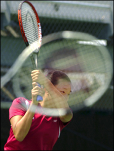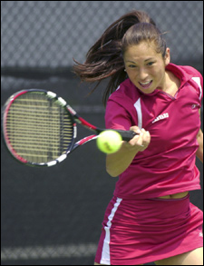 On Friday, junior partners Courtney Bergman and Susanna Lingman opened play ambitiously for Harvard with an 8-3 win over Erica Fisk and Jackie Leskovar. But the Buckeyes made their move at No. 2 doubles when Harvard sophomore Eva Wang aggravated a quad injury in mid-match. The half-hobbling Harvard duo (which included junior Alexis Martire) never recovered its on-court finesse, dropping three of its next four games to give Ohio State the 8-4 victory. The Buckeyes clinched the point at the No. 3 spot with another 8-4 win over first-year Preethi Mukundan and Melissa Anderson ’06.