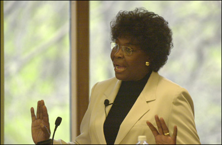 Afro-Brazilian politician and social activist Benedita da Silva spoke at Lamont Library last week. The former governor of Rio de Janeiro discussed the postcolonial challenges facing Brazil in its efforts to create a government and society that include traditionally disenfranchised groups such as blacks, women, and the poor. “When I was a kid,” said da Silva, “and lived in Chapeu da Mangueira hill, a slum in Rio de Janeiro’s south zone, very close to Copacabana Beach, no black children had even the right to dream of a life different from the ones led by their mothers and grandmothers.” The event was co-sponsored by the W.E.B. Du Bois Institute for African and African American Research.