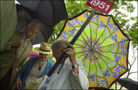 Gomes delivered equal measures of sobering realism and wry humor in what he called “the most efficient service you will ever attend.” He urged Harvard’s newest alumni to go easy on the older alums who would be gathered in Tercentenary Theatre, which he called “the theater of the absurd,” cautioning the members of the Class of ’04 that one day they would be on the receiving end of seniors’ snickers. “If you’re lucky, you can be an object of public derision,” he promised. He also reminded the students that Dean of Admissions and Financial Aid William Fitzsimmons dubs every incoming Harvard class the very best and brightest; “that means that you’re now the dimmest, the bottom of the heap,” he said.
