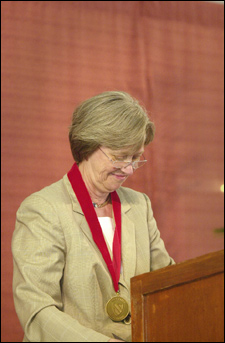 Tilghman said that creating a society in which women are able to realize their aspirations in a way that is compatible with raising children and having meaningful family lives is a campaign of the feminist revolution that remains to be won. She urged the Radcliffe Institute to devote its resources to finding a solution to this problem.