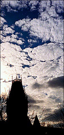 Memorial Hall looks decidedly spooky as a combination of midwinter light and shadow performs its haunting visual magic.
